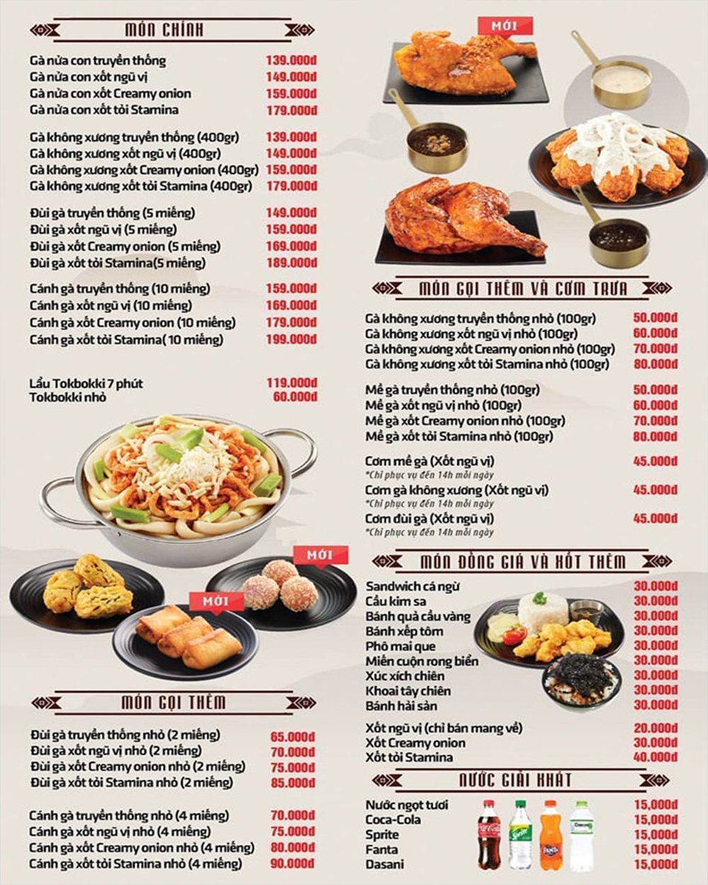 Menu của quán đa dạng từ gà rán đến những món đồ ăn kèm khác